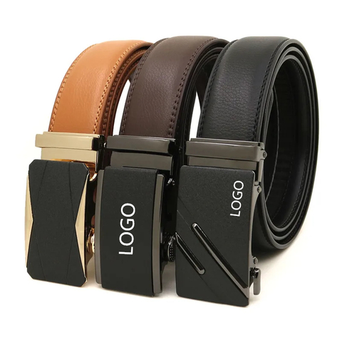 ブランドカスタム本革ベルト男性用自動ベルト牛隠し缶プリントロゴラチェットベルト工場